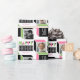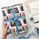 Transformez votre cadeau d'anniversaire avec ce papier d'emballage personnalisé élégant! Un motif géométrique et transparent avec des cubes rétro encadrant deux de vos photos préférées. Ce modèle modifiable peut être personnalisé avec le nom du récipiendaire et l'âge célébré. Couleurs : rose, vert, noir et blanc cassé.