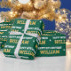 Custom photo gift wrap with a sports jersey style! This editable template features a "Happy Birthday" greeting, and is personalized with the recipient's name and birthday age. A trendy design with retro typography that can be customized to suit a variety of special occasions. Suitable for all ages, from kids and teens to family and friends. Perfect for a landmark 16th, 18th, 21st, 30th, 40th or 50th birthday. This seamless pattern gift wrap is printed on premium quality paper with your choice of a matte or glossy finish. Different length rolls are available from 6 feet - 60 feet. Colors: yellow gold, dark green and white — or customize the background color with the design tool.