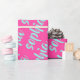 Envelopper du papier avec un nom personnalisé dans une police de caractères en caractères bleu aqua sur un arrière - plan rose chaud. Design audacieux et coloré.