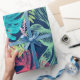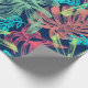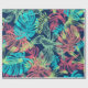 Papier d'enveloppement Feuille Tropical Aqua Jaune vert orange et corail couleur néon.