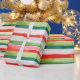 Aquarelle rayée dans les couleurs de Noël classiques : rouge, vert, blanc et or.