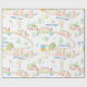 Papier Cadeau Aquarelle Bébé Monogramme jouets et trains