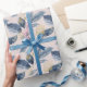 Papier Cadeau Aquarelle bleu et or Feuille simple