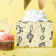 Mélange de notes musicales et de symboles motif sans couture faits avec des notes bleu marine peintes à l'aquarelle et des éléments confettis de parties scintillant en faux or.