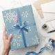 Délicats flocons blancs sur un arrière - plan bleu poussiéreux. Ce papier d'emballage est festif, rustique et élégant et est parfait pour Noël, Hanoukka ou toute autre fête hivernale. Basé sur une aquarelle originale de Lisa Audit Art. Entourez-vous d'art émouvant.