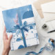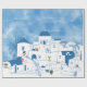 Papier Cadeau Aquarelle bleue et blanche Santorin Grèce