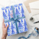 Papier Cadeau Aquarelle Chinoiserie Pagode Bleue