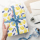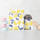 Jolie aquarelle citrus citron motif en jaune avec feuilles bleu marine sur un arrière - plan blanc pour une photo estivale fruitée de Vitamine C. Art original de Nic Squirrell.
