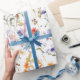 Fleur de jardin coloré Enveloppement Papier avec de jolies fleurs de campagne sauvage en violet, lavande, feuilles verts et plus pour toute fête ou occasion comme fête d'anniversaire, baby shower, douche nuptiale et cadeaux d'anniversaire