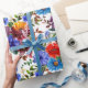 Papier d'emballage à motif floral rouge et bleu à aquarelle.