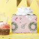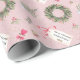 Le design de papier d'emballage festif de Noël des Fêtes à thème comprend un cadre de couronne de jour férié aquarelle pour votre photo préférée et des accents assortis, y compris l'aquarelle, le coeur, l'arc, une étiquette cadeau avec un message court, la verdure des Fêtes, les étoiles d'or, et des taches d'or. Le design est posé sur un joli arrière - plan rose. #Christmas #GiftWrap #Holidays