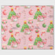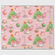 Papier Cadeau Aquarelle de Noël rose et vert Tropical