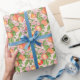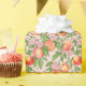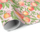 Ce motif présente des portraits aquarelle de pêches avec des fleurs roses