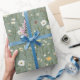 Papier Cadeau Aquarelle Fleurs Delicate Foliage Motif vert