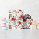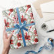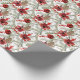 Papier Cadeau Aquarelle Fleurs rouges Motif de Noël vert