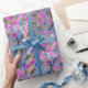 Papier Cadeau Aquarelle Florale En Bleu Vénitien Rose Cèdre