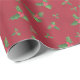 Ce beau papier d'emballage est simple mais festif. Il présente des feuilles saints peints à la main et des baies sur un arrière - plan rouge pourpre marbré.