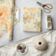 Papier d'emballage floral vert jaune à l'aquarelle avec de jolis roses de saumons et des détails de pré fleurs sauvages avec d'élégantes fleurs sauvages de saumons d'aquarelle, parfait pour l'emballage cadeau du printemps, de l'automne ou de l'automne.