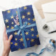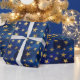 Papier Cadeau Aquarelle Motif bleu avec étoiles or