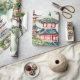 Ce papier d'emballage est composé d'une pagode de style asiatique traditionnelle, rendue dans de délicats traits d'aquarelle, au milieu d'un paysage verdoyant. Le design s'inspire de l'élégance architecturale que l'on retrouve au Japon, en Chine, en Corée et au Vietnam, et qui rend la sérénité de la nature mêlée au patrimoine culturel. Le mélange harmonieux de teintes verdoyantes et de détails complexes évoque un sentiment de tranquillité et d'intemporalité, ce qui en fait une pièce polyvalente pour diverses applications artistiques.