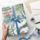 Ce papier d'emballage est composé d'une pagode de style asiatique traditionnelle, rendue dans de délicats traits d'aquarelle, au milieu d'un paysage verdoyant. Le design s'inspire de l'élégance architecturale que l'on retrouve au Japon, en Chine, en Corée et au Vietnam, et qui rend la sérénité de la nature mêlée au patrimoine culturel. Le mélange harmonieux de teintes verdoyantes et de détails complexes évoque un sentiment de tranquillité et d'intemporalité, ce qui en fait une pièce polyvalente pour diverses applications artistiques.
