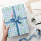 Papier Cadeau Aquarelle Pastel Arbres de Noël avec Plaid Bleu