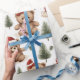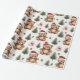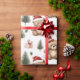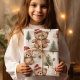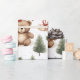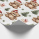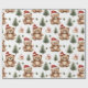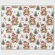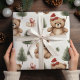 Papier Cadeau Aquarelle Père Noël Teddy Ours et pins Noël