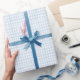 Papier Cadeau Aquarelle Preppy En vichy bleu