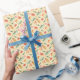 Ajoutez une touche personnalisée à votre cadeau de vacances avec ce papier d'emballage motif aquarelle. Le papier à envelopper a un motif de cadeaux de Noël peints et de cloches avec des rubans et des arcs. Il y a aussi des étoiles et de la verdure. La couleur Arrière - plan de jaune doux peut être changée, selon vos préférences — il suffit d'aller dans la zone d'édition de la conception. Un texte personnalisé peut également être ajouté.
