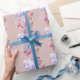 Ce papier d'emballage personnalisé de la Saint-Valentin présente un thème d'aquarelle renard romantique et mignon. Deux renards d'amour fantaisistes sont représentés en train de s'embrasser en bas à droite. Une mignonne petite souris flotte dans une montgolfière. Un nom personnalisé est imprimé sur un coeur rose en bas à gauche sur un arrière - plan rose poussiéreux.