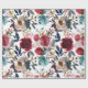 Beau papier d'emballage en aquarelle bouquet de fleurs florales aux couleurs claires mais vibrantes; rose rousse, bordeaux, vin, merlot avec verdure sur arrière - plan blanc. Parfait pour envelopper n'importe quel cadeau pour n'importe quelle occasion; mariage, anniversaire, fiançailles, anniversaire, fête....ou pour des projets d'artisanat