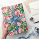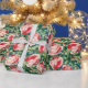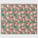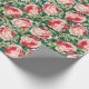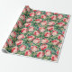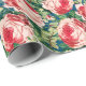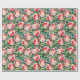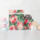 Papier Cadeau Aquarelle Rose & Rose Rouge Fleurs & Feuilles vert
