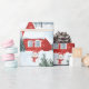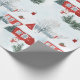 Aquarelle Rouge Nordique Maisons Snowman papier enveloppant Noël.