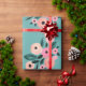 Emballage cadeau à motifs floraux rose et turquoise avec des accents de pêche.