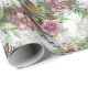 Elégant papier d'emballage floral de style victorien avec une belle aquarelle peinte à la main, une couronne de fleurs violet violet et un oiseau bleu assis dedans.
