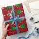 Papier Cadeau Arbre de Noël avec des étoiles sur le rouge fait
