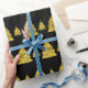Papier d'emballage de Noël élégant, élégant et moderne, avec un motif d'arbre de Noël doré sur un arrière - plan noir. Aqui Poppy a des cartes de Noël pour compléter ce design dans notre magasin.
