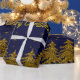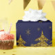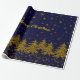 Papier Cadeau Arbre de Noël en or brillant, étoiles, neige sur b