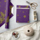 Papier Cadeau Arbre de Noël en or brillant, lune, étoiles sur vi