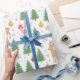 Papier Cadeau Arbre de Noël et rennes aquarelles -