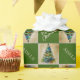 Arbre de Noël Festif Aquarelle Vert Vacances Papier d'enveloppement. Dessin d'aquarelle artistique coloré d'un sapin de Noël. Un design festif. Ajoutez votre nom et vos souhaits de vacances.