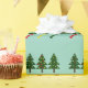 Ce design animé est orné de trois arbres de Noël décorés, tous décorés de décorations uniques. Le premier arbre est décoré de coeurs blancs et rouges, le second de starbursts rouges et jaunes, et le troisième de points jaunes. En dessous des arbres se trouvent trois étoiles filantes colorées en rouge, jaune et vert, apportant une touche fantaisiste à la scène festive.