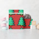 Papier Cadeau Arbre de Noël vert 8 bits avec arrière - plan roug