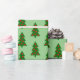 Papier Cadeau Arbre de Noël Vert Avec Coeurs Rouges Simple
