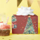 Ce beau papier présente une aquarelle fantaisie d'un sapin de Noël orné d'ornements colorés et surmonté d'une étoile scintillante. Les couleurs vives et le design festif feront ressortir vos cadeaux sous l'arbre.