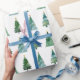 Aquarelle verte blanche Festive Arbre d'hiver Papier d'enveloppement de Noël