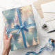 Papier Cadeau Arbres Bleus et Blancs Noël moderne