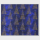 Papier Cadeau Arbres de Noël en or sur soie bleue