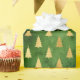 Ce papier d'emballage festif et élégant est polyvalent et peut être utilisé pour donner des cadeaux ou des projets artistiques et artisanaux. Le design présente des arbres de Noël en feuille d'or sur un arrière - plan vert en détresse. Parfait pour Noël et la période des fêtes.