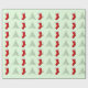 Ce papier d'emballage présente des arbres de Noël décorés et des bas rouges de Noël, sur un arrière - plan vert clair.